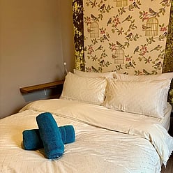 Relax and unwind in this cosy double with Queen size bed (4’6”) and ensuite bathroom with a front facing window allowing you to gaze out over our breath-taking gardens from your comfy nest. Includes a 32-inch flat screen TV, robe and slippers and tea and coffee making facilities.