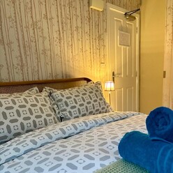 This fantastic double aspect corner double room now with a King-size bed (5' wide) and ensuite bathroom, includes a 32-inch flat screen TV, robe and slippers and tea and coffee making facilities.